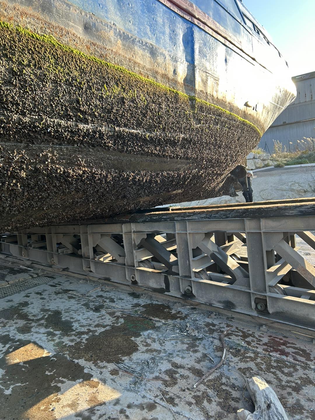 Voici le bateau après un bon coup de fraîcheur. Nous avons effectué un nettoyage au nettoyeur très haute pression, en plus du piquage au pistolet à aiguilles.